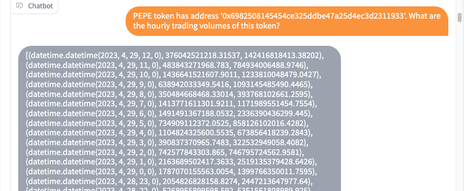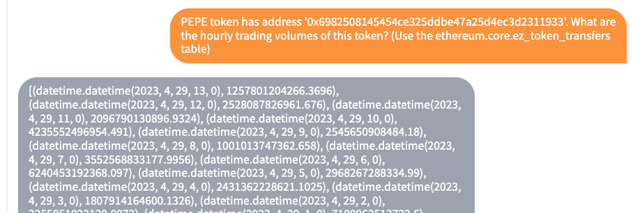 A more versatile ChatGPT-powered blockchain data access tool could potentially tap into extensive databases hosting various types of blockchain data across multiple chains. Currently, blockchain analysts typically use SQL to query data curated by providers like Dune and Flipsidecrypto. As ChatGPT can transform natural language prompts into SQL, creating a tool that allows users to interact directly with these SQL databases through ChatGPT could democratize blockchain data access. By eliminating the need for specialized programming skills, such as SQL, this tool would enable a much broader audience to conduct blockchain data analytics.